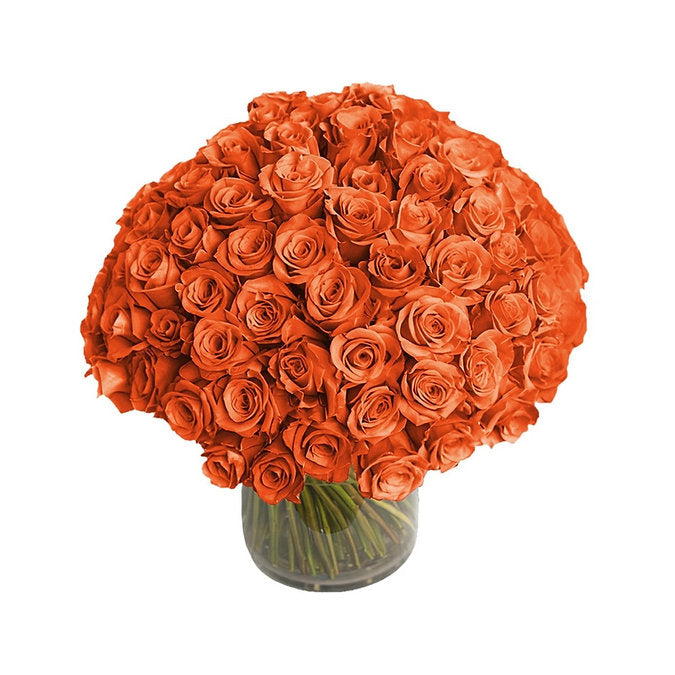 100 Orange Roses in a Vase