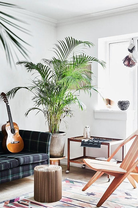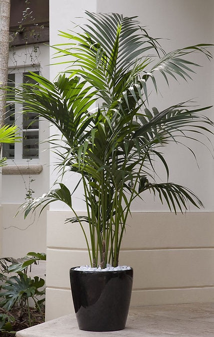 Imported kentia plant in a black pot. Kentya, a type of palm tree, likes bright environments and moist soil. It has a complete air purifier feature. It should not be exposed to semi-shade environment and direct heat sources. Width: 50 - 60 cm. Height: 160 - 170 cm. Depending on the pot stock availability, the form may vary, provided that the style and color are the same.