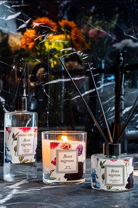 The cologne, candle, and room fragrance version of the scent, designed with Halfeti rose essence produced specifically for Rosa nigrum and signed by Zeynep Keyman, is combined... The scent, combined with its rich content and the unique notes of Halfeti rose, leaves unforgettable traces with its permanent and relaxing effect. The set includes: 1 Rosa nigrum (200 ml) cologne, 1 Rosa nigrum (235 gr) candle and Rosa nigrum (120 ml) room fragrance.