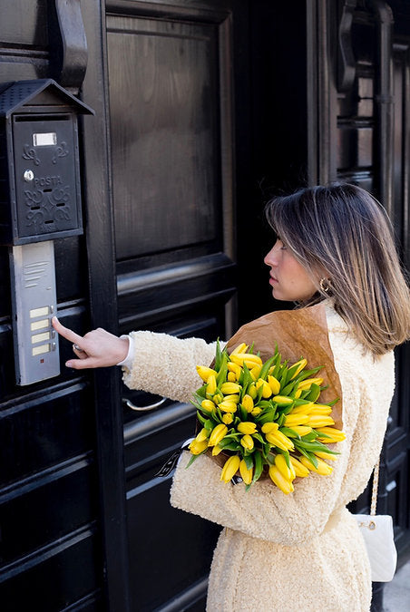 Elegant and stylish bouquet made of 30 tulips in yellow tones. Tulip color alternatives: White, pink, yellow, orange. You can specify the color you want in the notes section for Rosa nigrum in the cart. Width: 25 - 30 cm. Height: 40 - 45 cm.