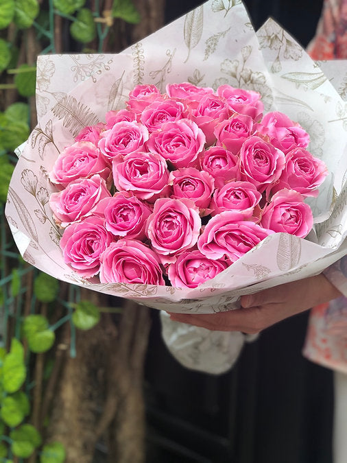 Bouquet of 20 imported high quality roses in pink tones. For those who love stylish, simple and quality... Diameter: 30 - 35 cm. Height: 40 - 45 cm.
