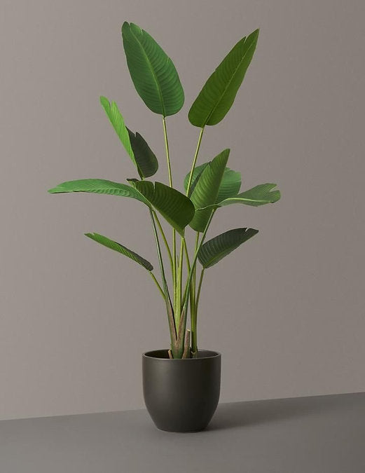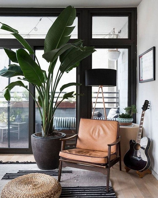 Imported banana tree in a black pot.